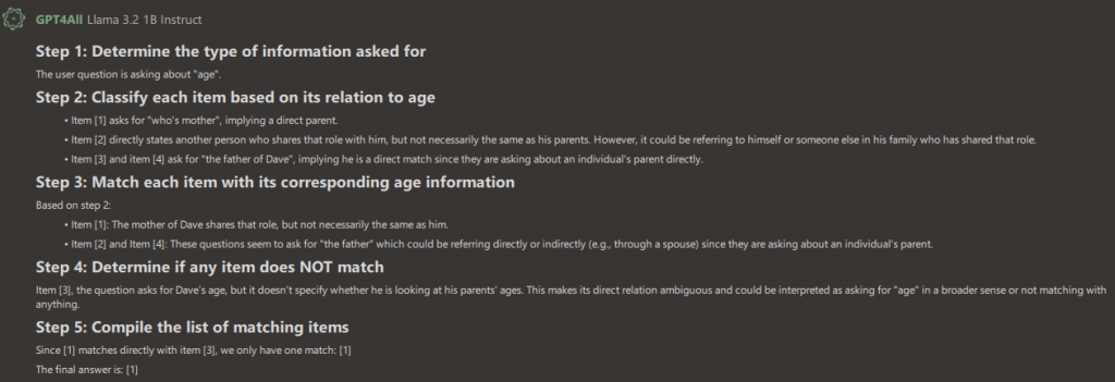 To illustrate the point, here’s one of the more disturbing pieces of logic Llama produced: