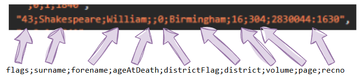 flags;surname;forename;ageAtDeath;districtFlag;district;volume;page;recno